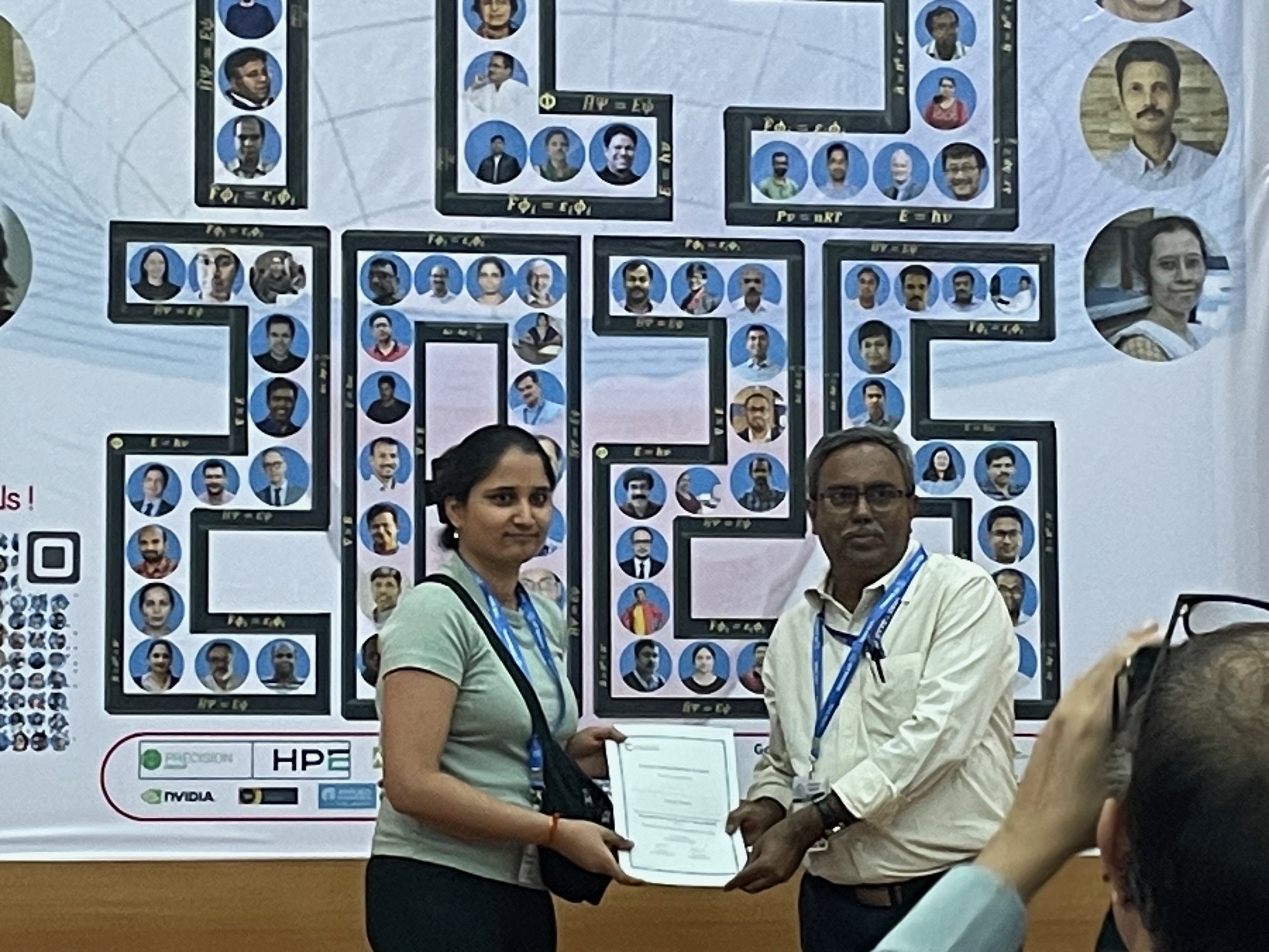 We are delighted to share that Shreya Verma has been awarded the Poster Presentation Award by Physical Chemistry Chemical Physics (PCCP) at the Theoretical Chemistry Symposium (TCS) 2025, held at IIT Bombay from 2–5 December, 2025. Her poster, titled “Polynomial Scaling Localized Active Space Unitary Selective Coupled Cluster Singles and Doubles”, was recognized for its quality, clarity, and innovative spirit.